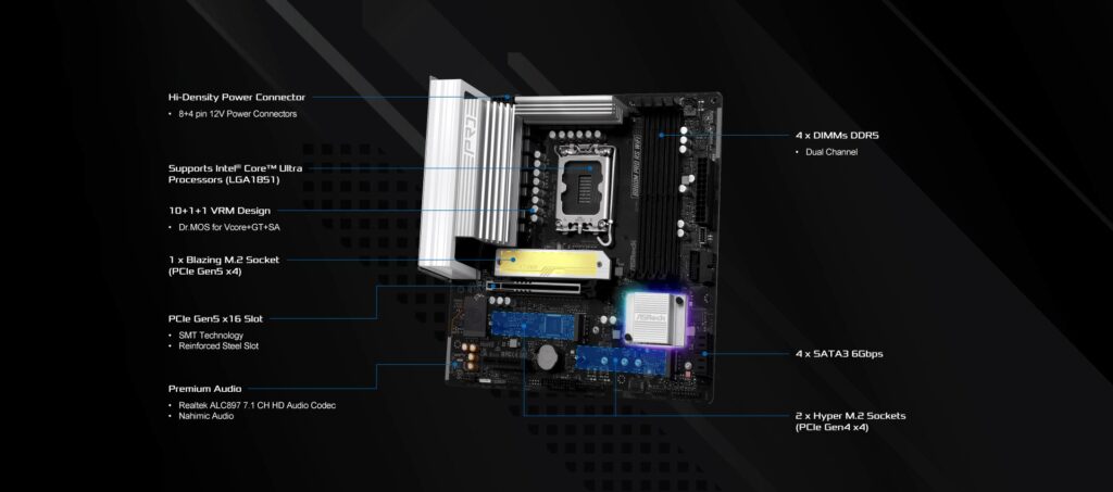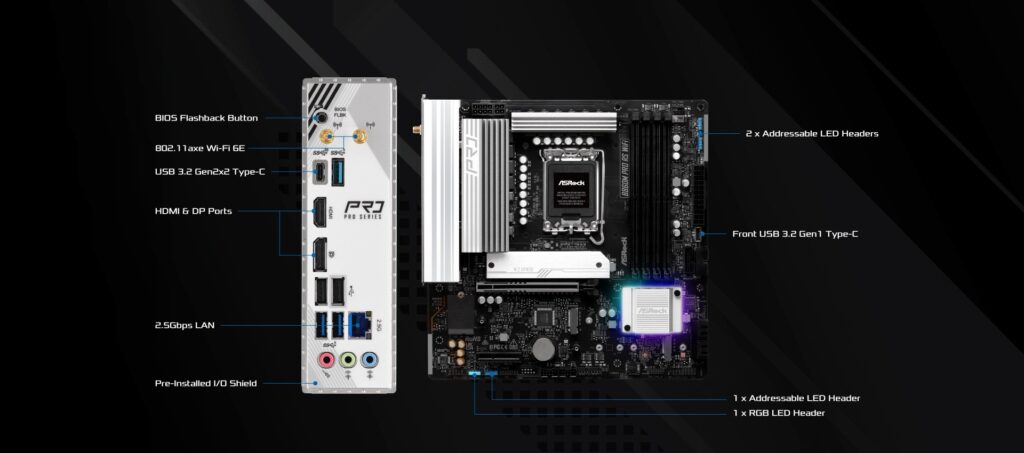 27 reviews for Asrock B860M PRO RS WIFI, Intel B860, 1851, Micro ATX, 4 DDR5, HDMI, DP, Wi-Fi 6E, 2.5G LAN, RGB, 3x M.2