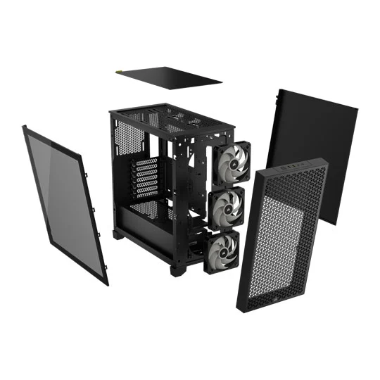 With a stylish tempered glass side panel, this case lets you showcase your components while keeping them cool. The high-airflow front panel, combined with multiple fan mount options, ensures your system stays cool even during intense tasks.