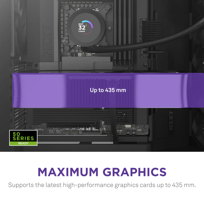 Designed for serious builders, the H9 Air Flow can support up to ten fans and large radiators up to 420mm on both the top and front-right. With space for GPUs up to 459mm and smart fan placement, it's tailor-made for enthusiast-level cooling and overclocking. Whether you're planning an AIO liquid-cooled powerhouse or a GPU-heavy rig, the case’s spacious layout and optimized clearance ensure you're never limited by space or airflow. The chassis comes with four quiet NZXT CV series fans pre-installed, ready to keep even the most demanding components running cool.